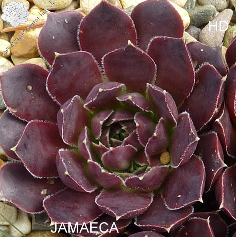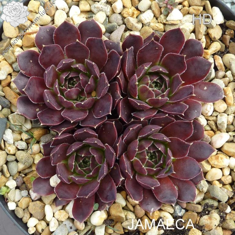 Rosetten bis 7 cm, Blätter eiförmig, kurz bespitzt, bordeauxviolett - purpurrot