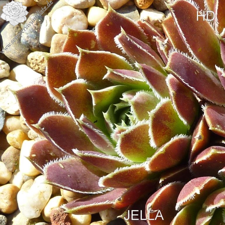 Rosetten bis 5 cm, Blätter lanzettlich, lang bespitzt, Basis hellgrün, Rest beigerot - hellrosa, Blattränder bewimpert