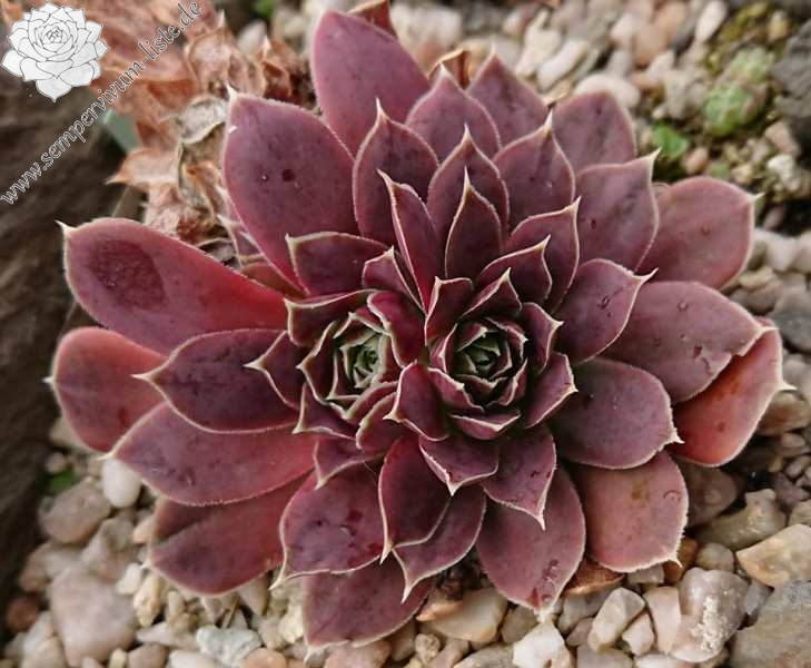 Rosetten bis 5 cm, Blätter rundlich, kurz bespitzt, altrosa - erikaviolett, Blattränder hell