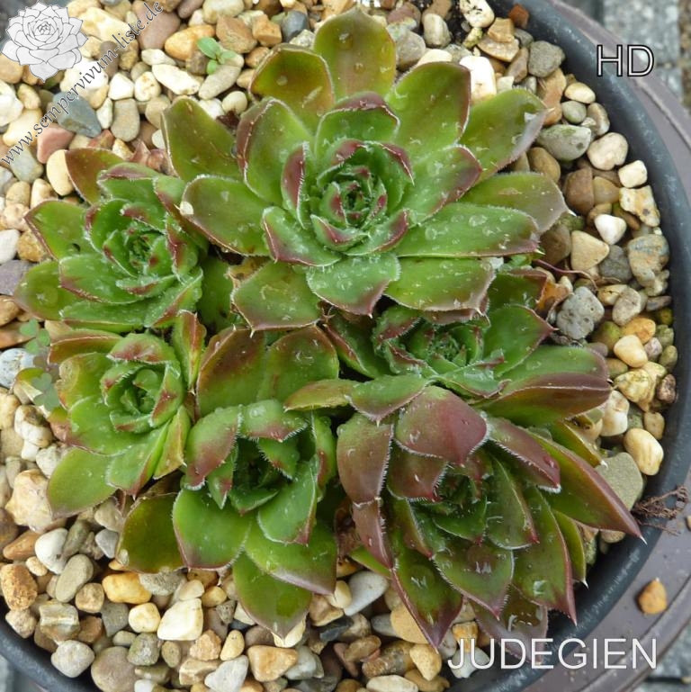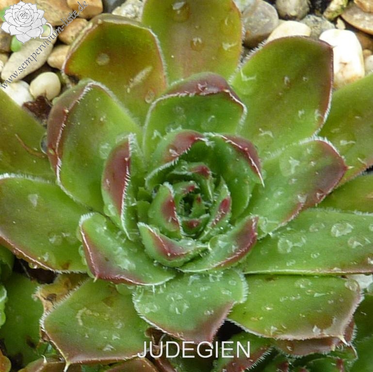 Rosetten bis 8 cm, Blätter lanzettlich, lang bespitzt, hellgrün, braunrote Spitzen
