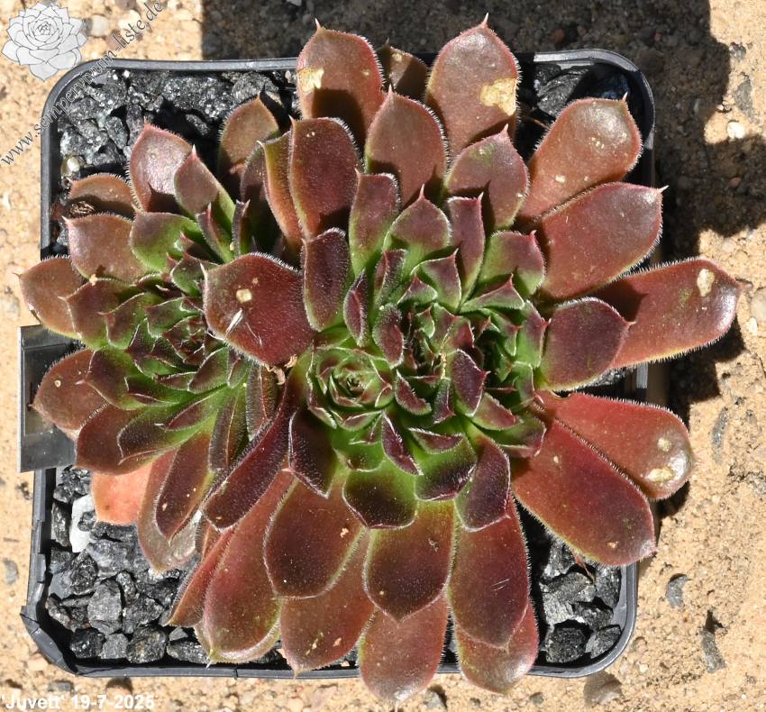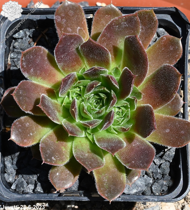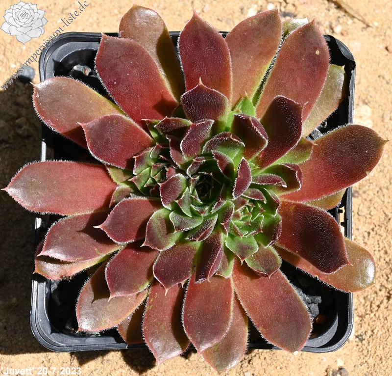 Rosetten bis 10 cm, Blätter linealisch, rundlich endend, , kurz bespitzt, samtige Substanz, trübes Lila