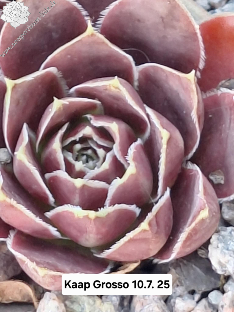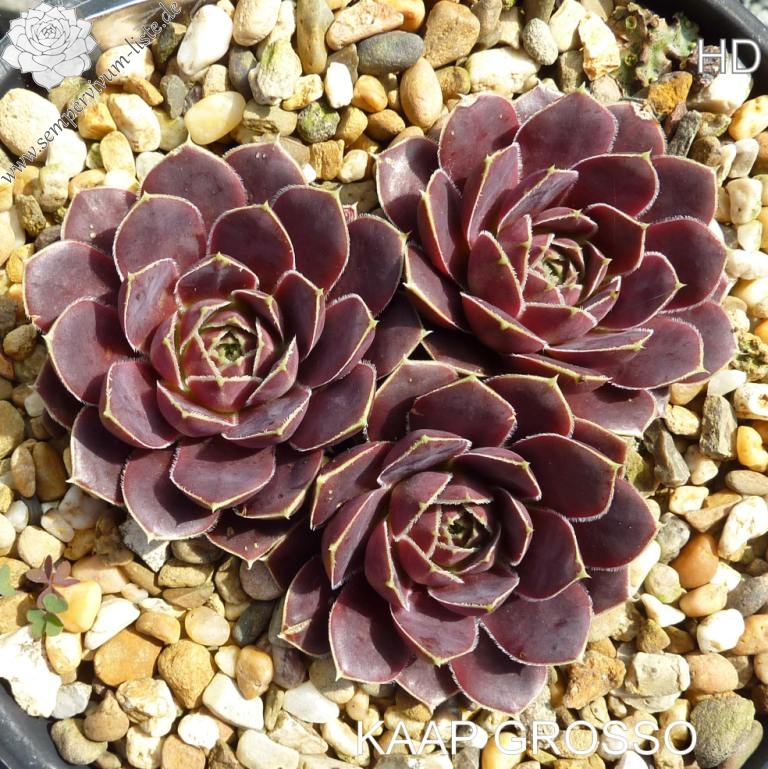 Rosetten bis 6 cm, Blätter rundlich, kurz bespitzt, pastellpurpur - pastellrosa, Blattränder hell, bewimpert