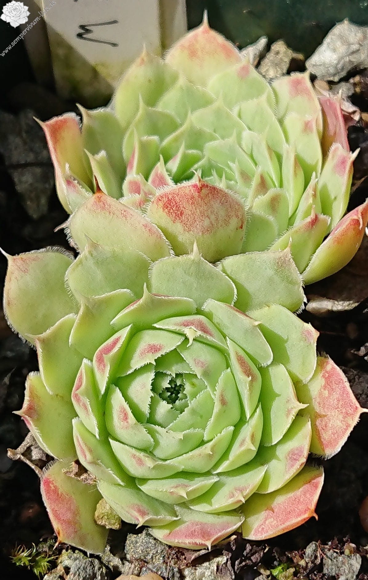 Rosetten bis 6 cm, Blätter linealisch, lang bespitzt, samtige Substanz, lindgrün, Spitzen braun - rot