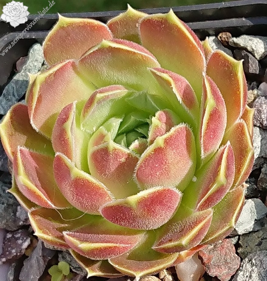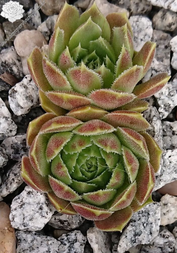 Rosetten bis 5 cm, Blätter breit spatelig, kurz bespitzt, samtige Substanz, lindgrün, pastellrosa überhaucht