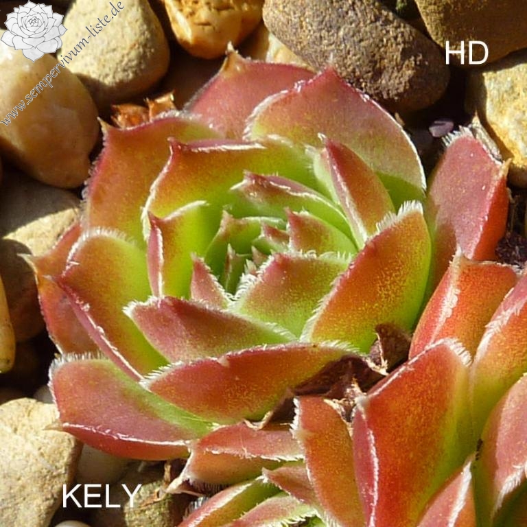 kleine Rosetten, Blätter rundlich, kurz bespitzt, Basis ginstergelb, Rest blutorange - hellrotorange