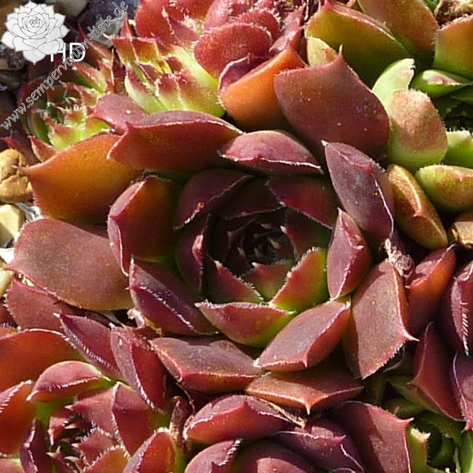 Rosetten bis 6 cm, Blätter oval, lang bespitzt, dunkles Rot