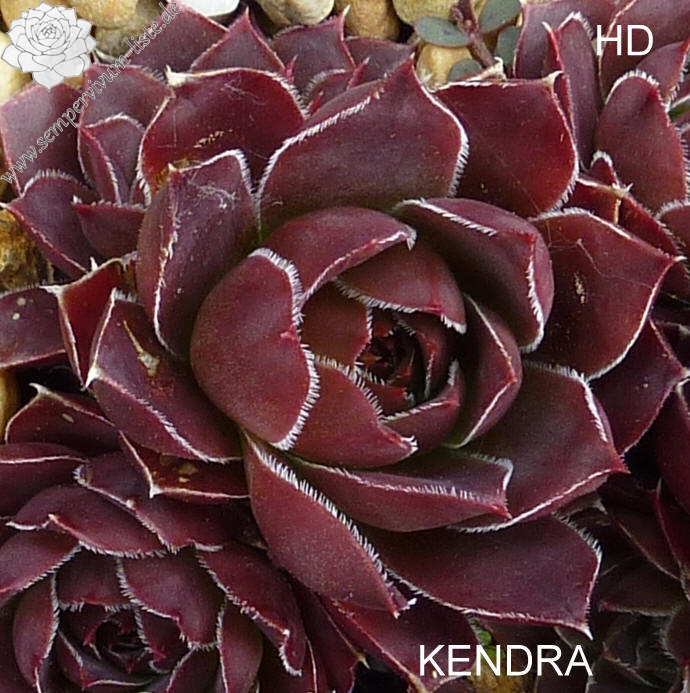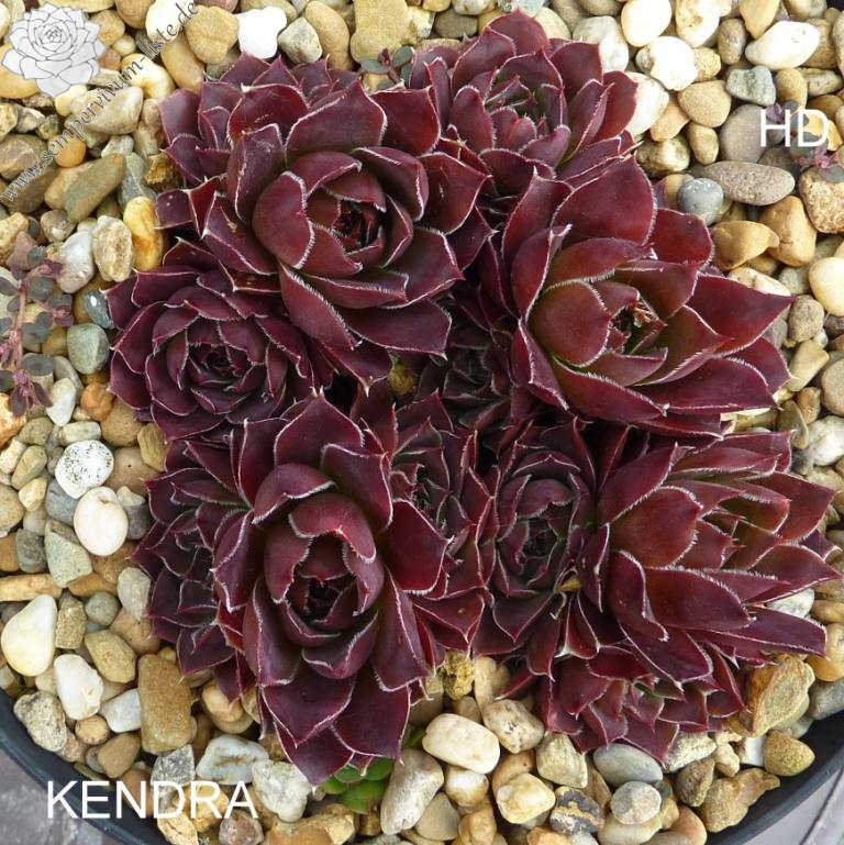 Rosetten bis 5 cm, Blätter oval, lang bespitzt, purpurrot - weinrot, Blattränder bewimpert