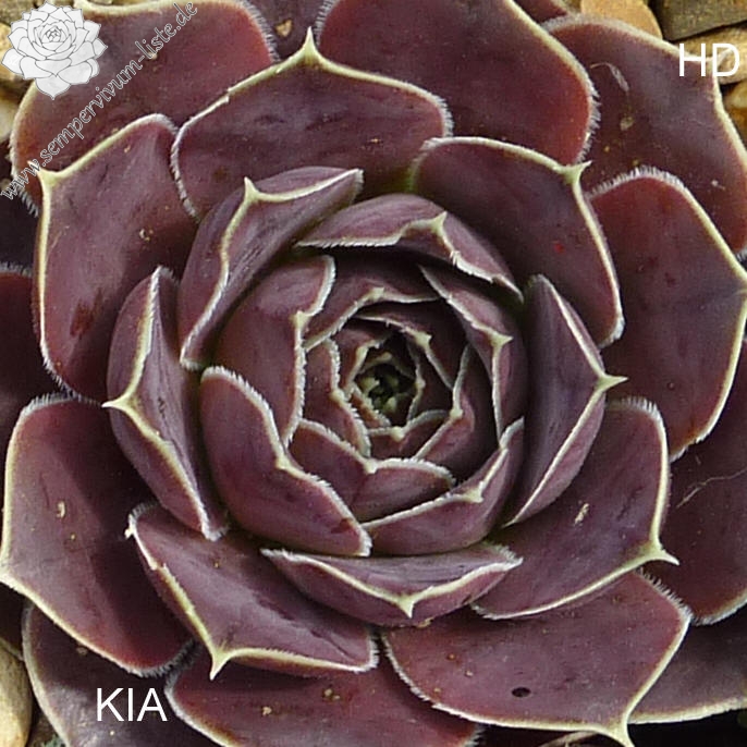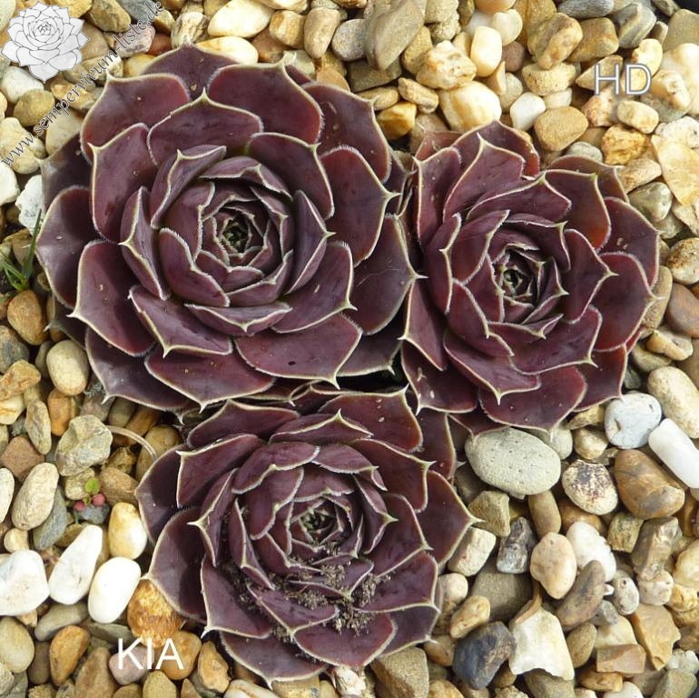 Rosetten bis 5 cm, Blätter breit keilförmig, kurz bespitzt, rotlila - rotviolett, Blattränder hell, bewimpert