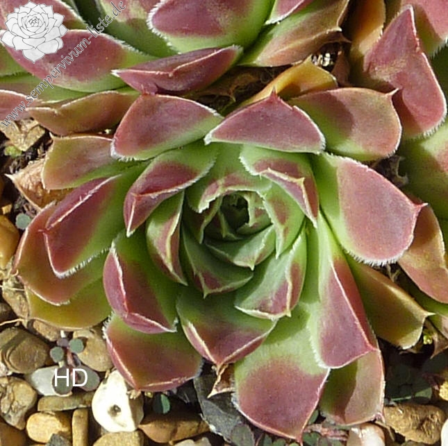 große Rosetten, Blätter breit oval, kurz bespitzt, Herz lindgrün, Spitzen altrosa, Ränder leicht bewimpert