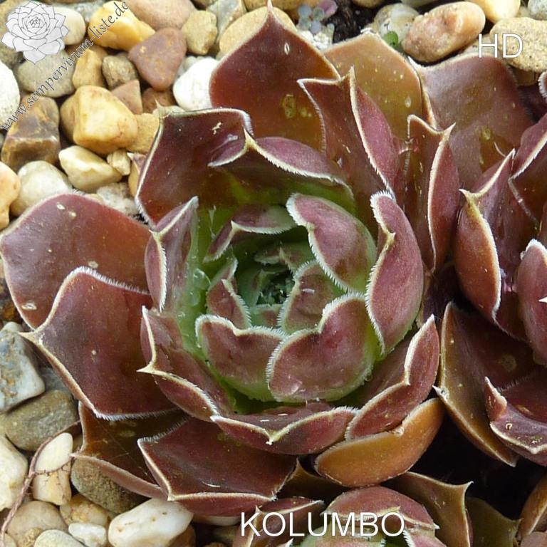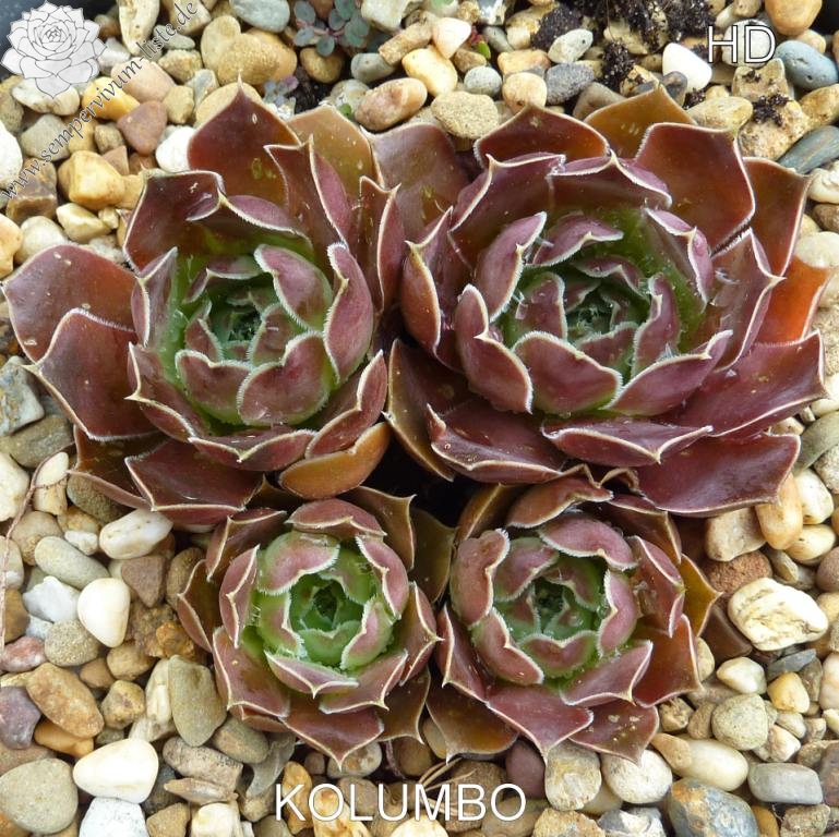 Rosetten bis 5 cm, Blätter breit keilförmig, lang bespitzt, oxidrot - braunrot, Basis hellgrün, Blattränder hell, bewimpert