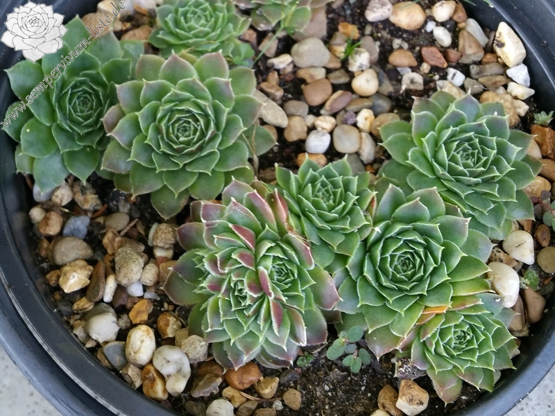 kleine kompakte Rosetten, Blätter rundlich, kurz bespitzt, helles Grün mit rot - braunen Spitzen