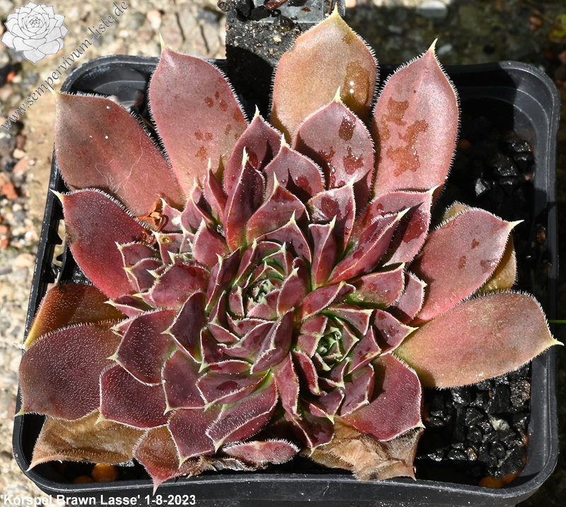 kleine Rosetten, Blätter oval, kurz bespitzt, oxidrot - braunrot, Basis hellgrün