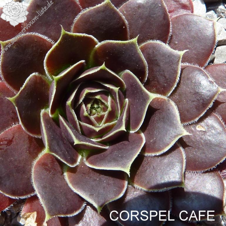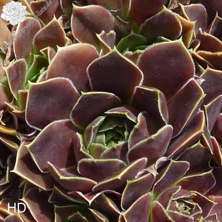 Rosetten bis 8 cm, Blätter keilförmig, lang bespitzt, dunkles Lila - Schwarz, Blattränder hell, kleine Blattwimpern