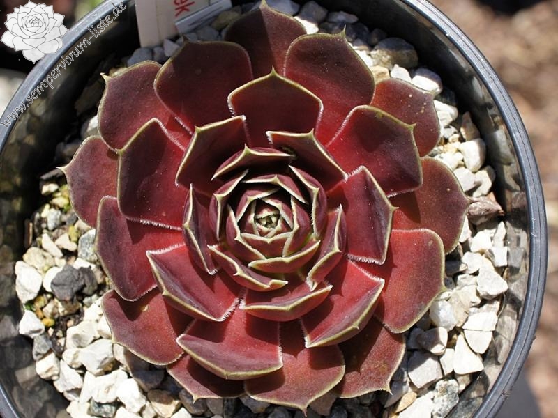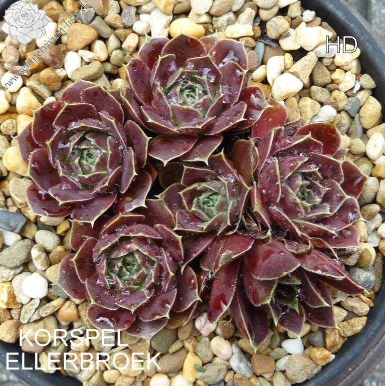 Rosetten bis 5 cm, Blätter rundlich, kurz bespitzt, rubinrot - himbeerrot, Blattränder hell