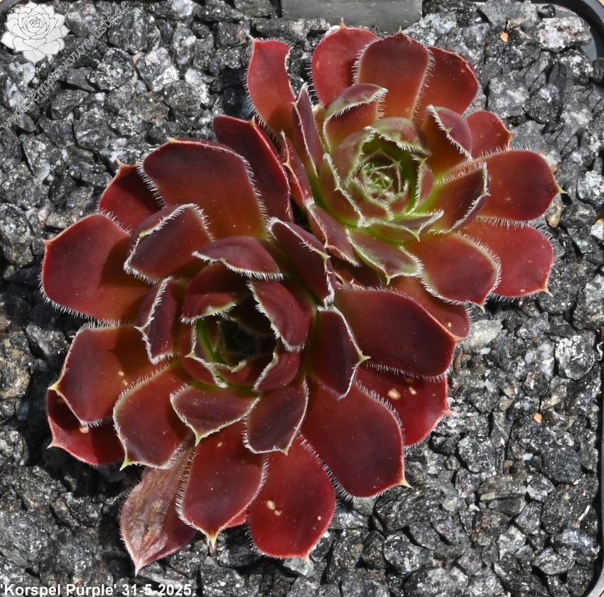 kleine Rosetten, Blätter oval, lang bespitzt, leuchtendes Dunkelrot, Blattränder silbern bewimpert