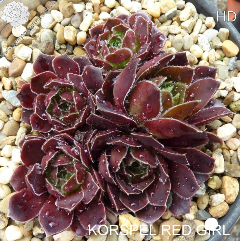 Rosetten bis 7 cm, Blätter breit spatelig, kurz bespitzt, oxidrot - rotviolett, Blattränder bewimpert