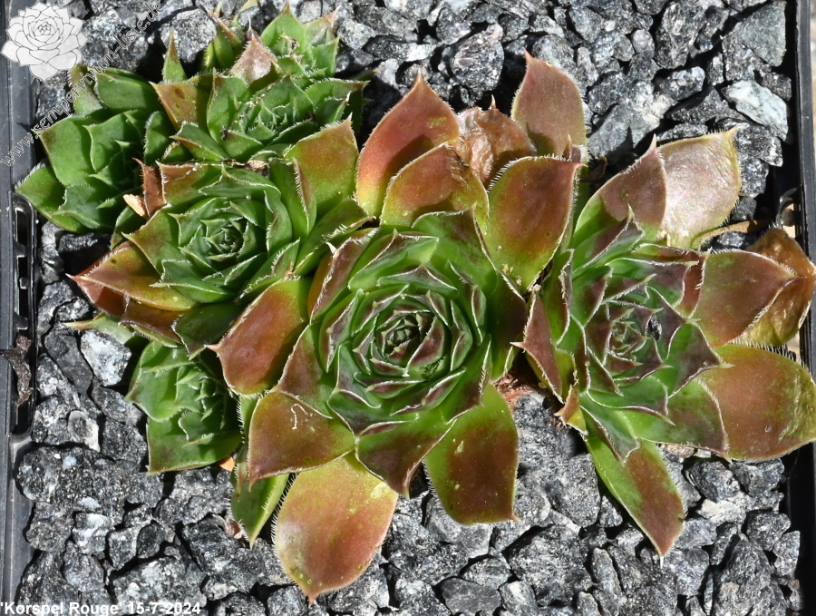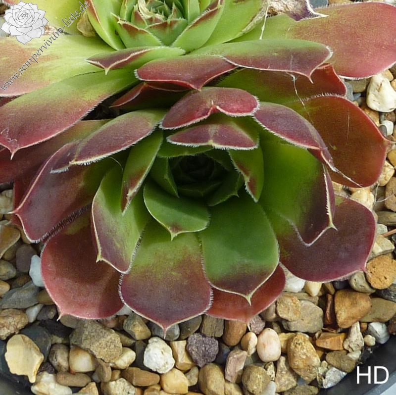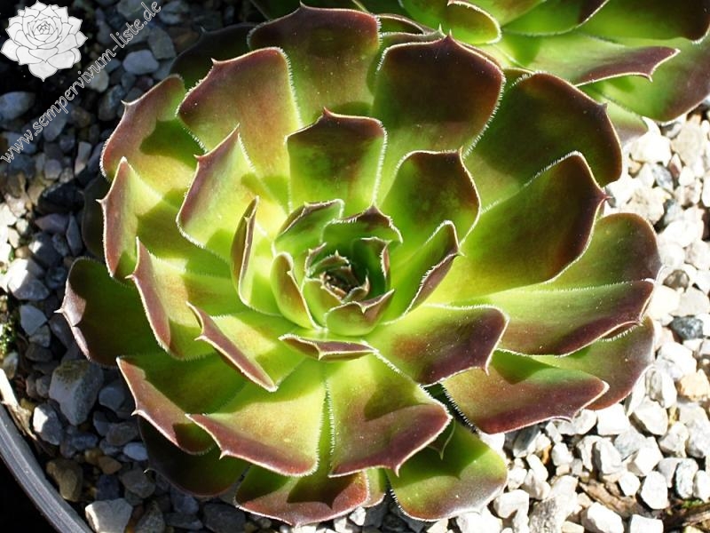 sehr große offene Rosetten bis 12 cm, Blätter linealisch, Basis grün, obere Drittel dunkles Rotbraun