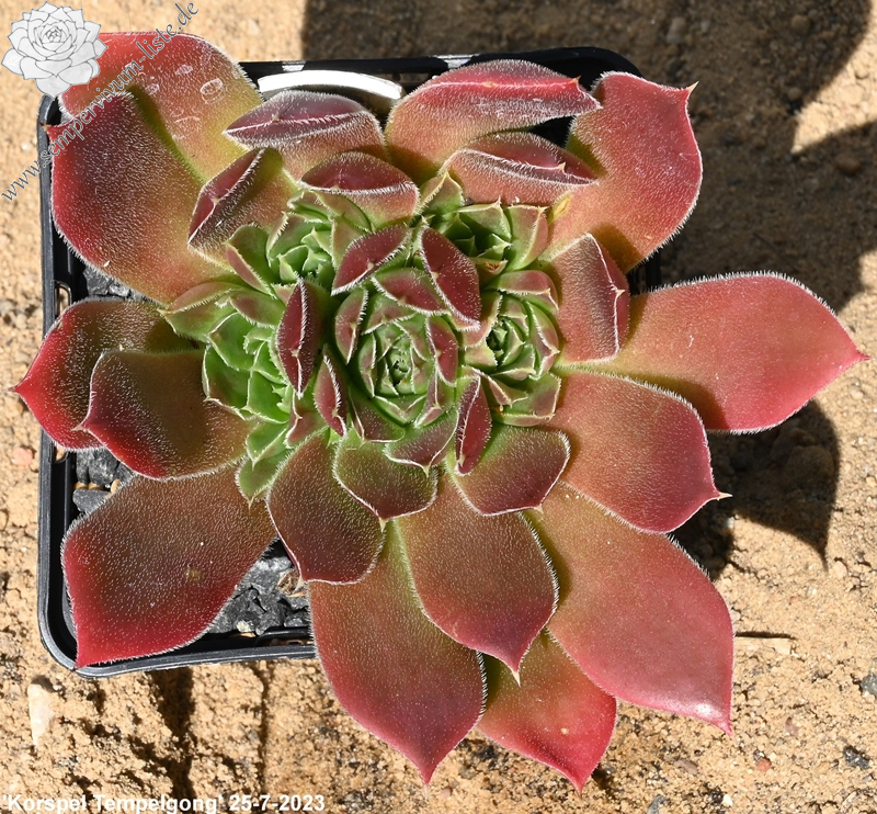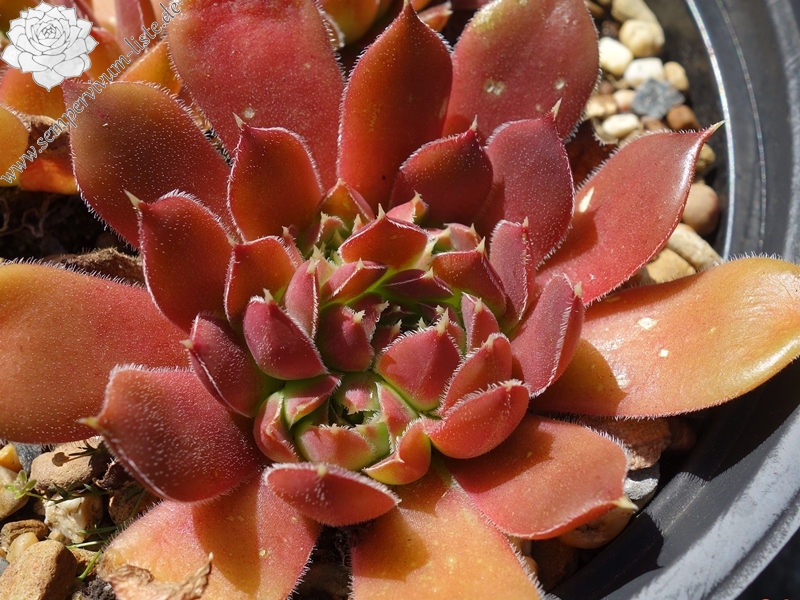 Rosetten bis 9 cm, Blätter linealisch, lang bespitzt, samtige Substanz, Mischfarben grün - rosa - rot, bewimpert