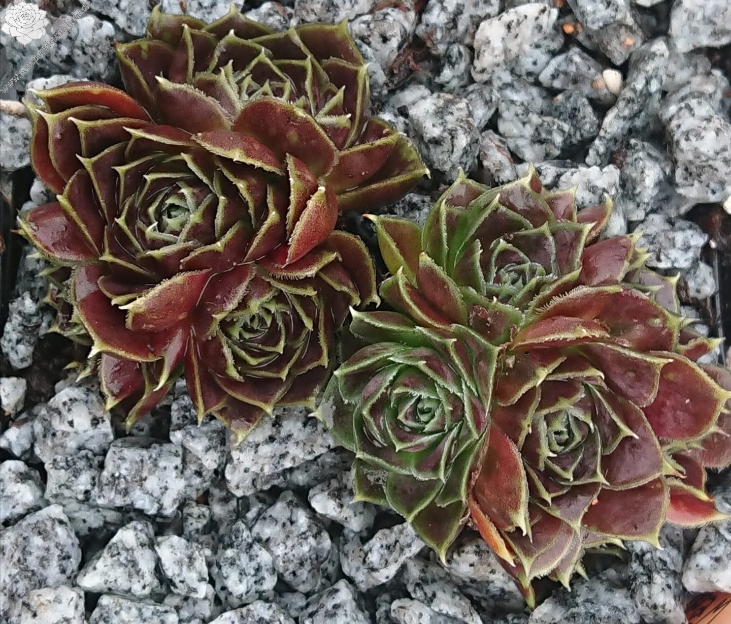 kleine Rosetten, Blätter rundlich, kurz bespitzt, Basis hellgrün, Rest beigebraun -beigerosa