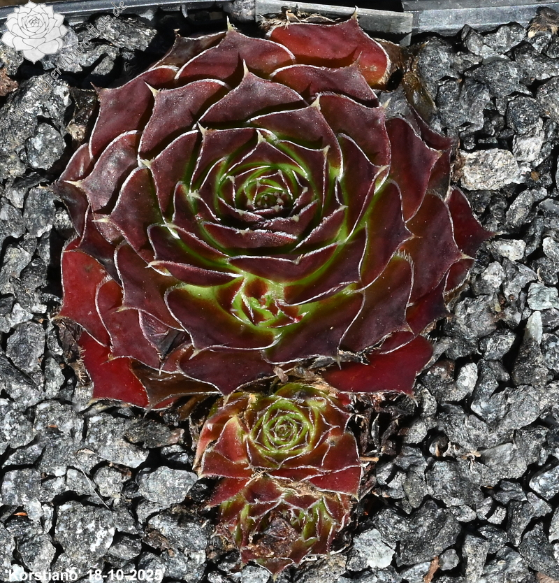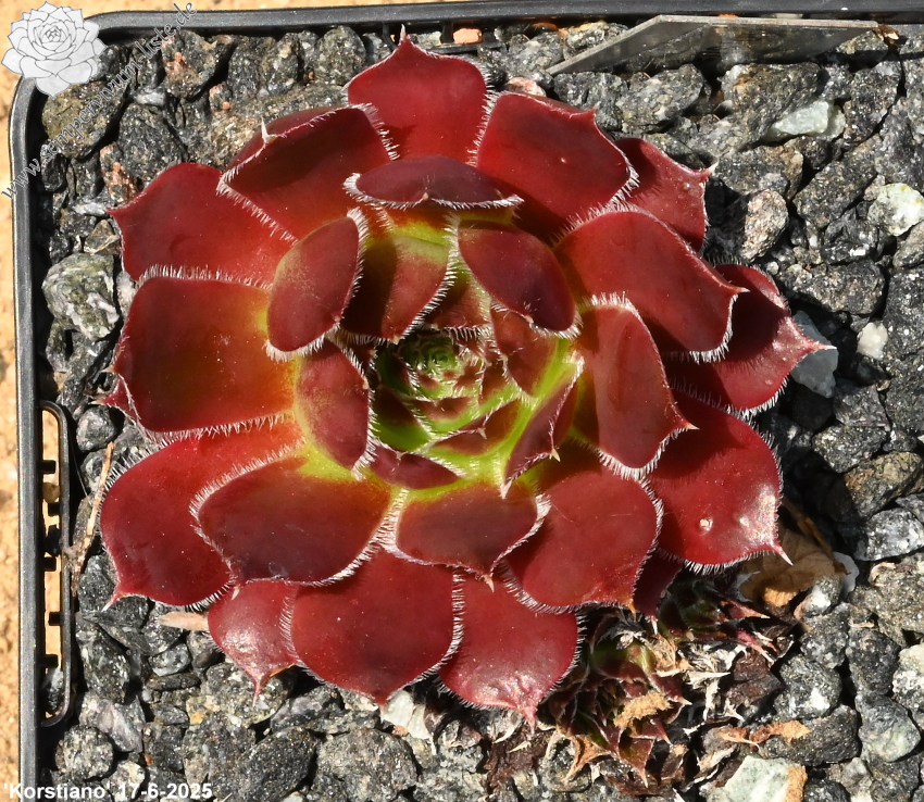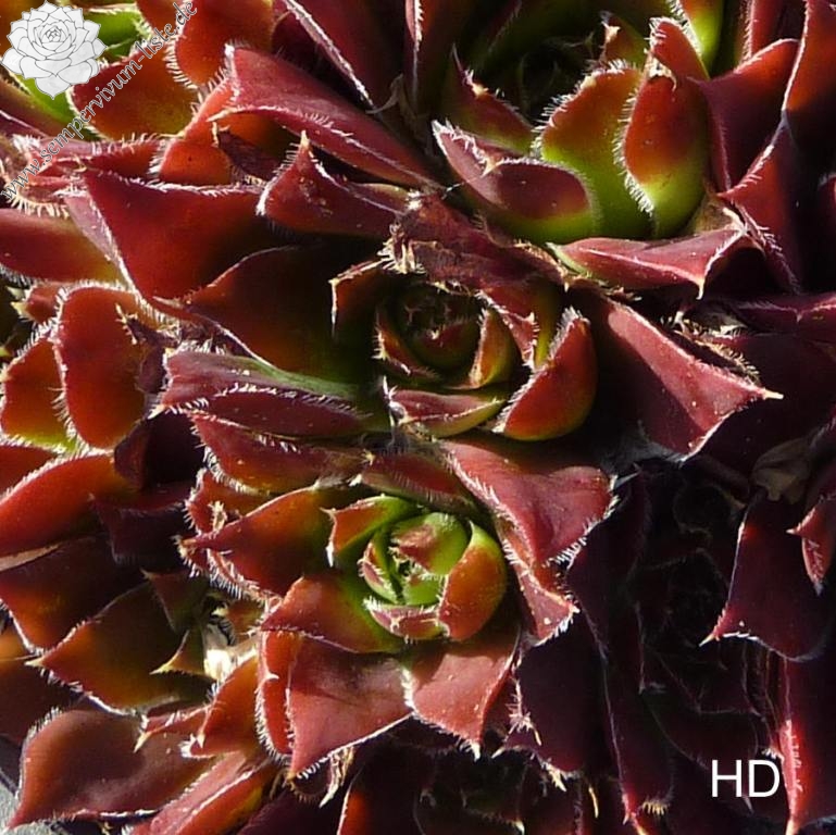 kleine Rosetten, Blätter lanzettlich, lang gespitzt, Herz hellgrün, dunkles Rot, Blattränder bewimpert