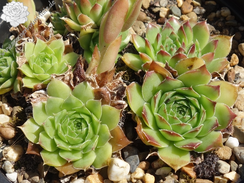 kleine Rosetten, Blätter oval, lang bespitzt, hellgrün, Blattspitzen rotbraun