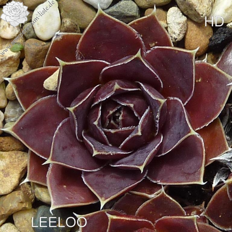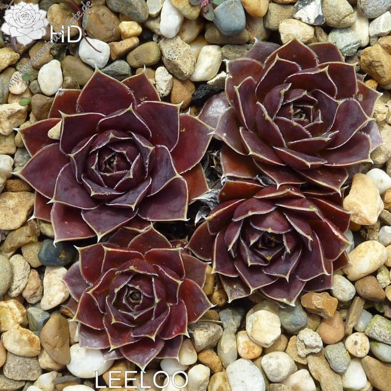 Rosetten bis 5 cm, Blätter lanzettlich, kurz bespitzt, weinrot - purpurrot, Blattränder hell