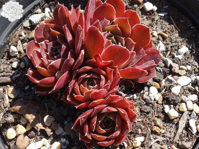 Rosetten bis 10 cm, Blätter linealisch an der Spitze rundlich, kurz bespitzt, Blattränder bewimpert, bordeauxviolett - rotviolett, Zufallssämling