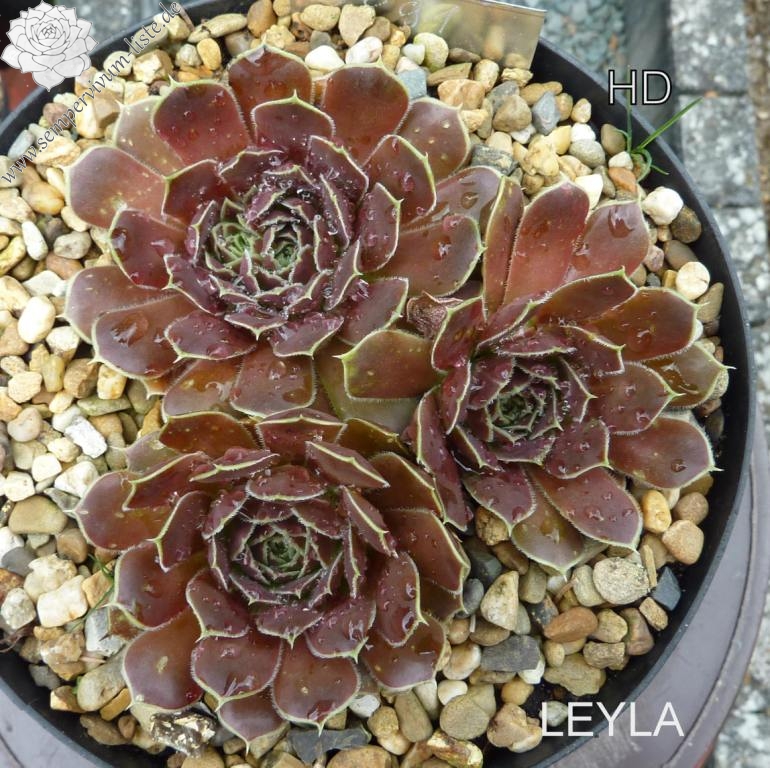 Rosetten bis 8 cm, Blätter linealisch, kurz bespitzt, beigerot - lachsrot, Blattränder hell