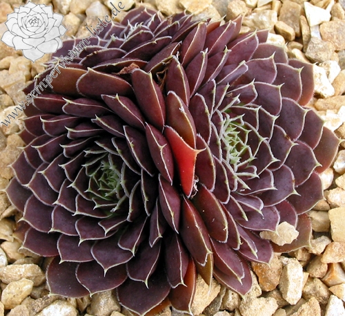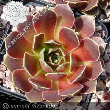 Diese belgische Sorte ist sehr attraktiv während sie Ihre Frühjahrsfarbe ihrer breiten Blätter präsentiert. Irgendwie mit orangefarbener Aura. Später dann in bräunlichem Rosa bis zum Herbst, wobei dann ein kräftiger rosaroter Teint die ganze Rosette schmückt. Eine empfehlenswerte Auslese mit größeren Rosetten.