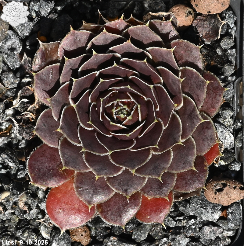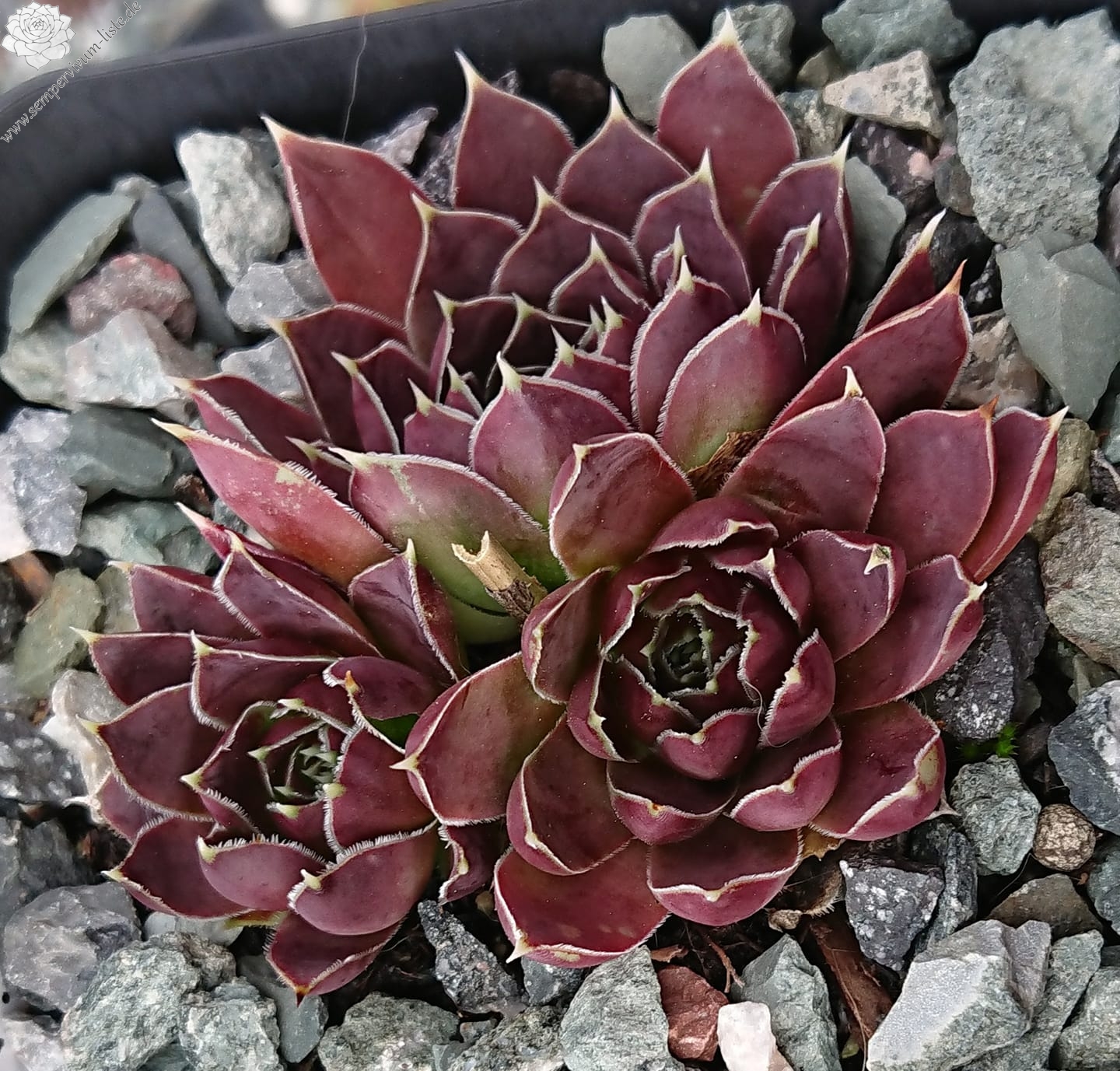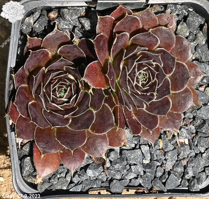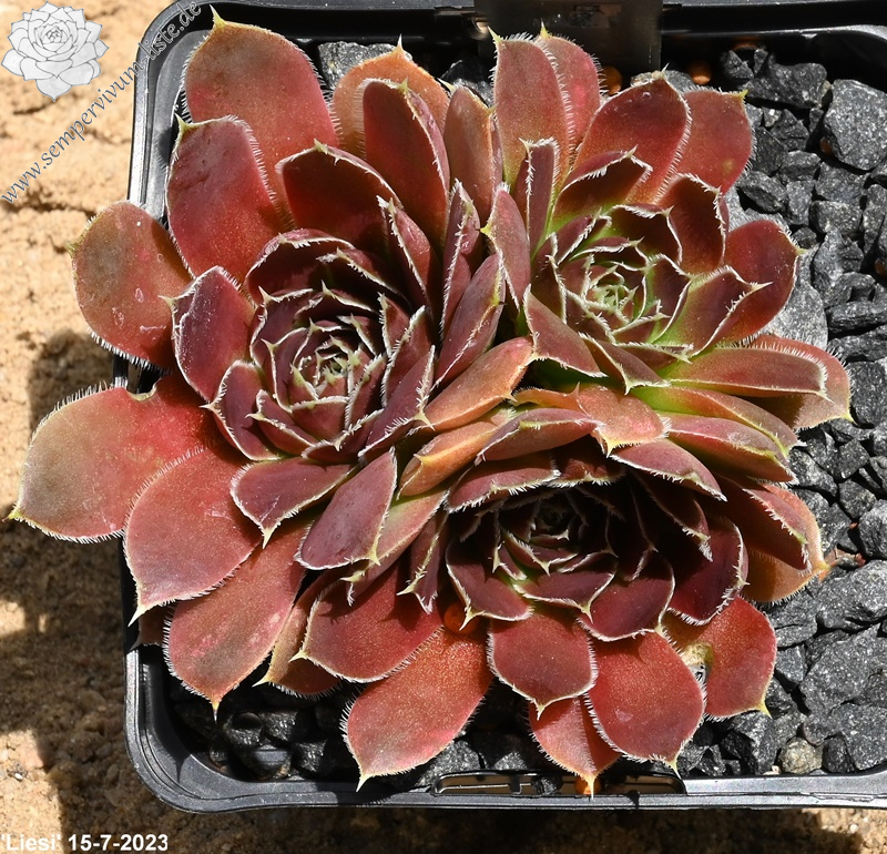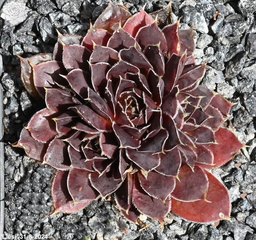 kleine Rosetten, Blätter oval, kurz bespitzt, oxidrot - dunkelweinrot, Blattränder bewimpert