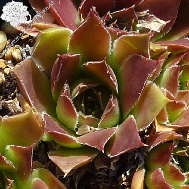 kleine offene Rosetten, Blätter lanzettlich, lang bespitzt, Mischfarben grün, braun - rosa - rot, Ränder bewimpert