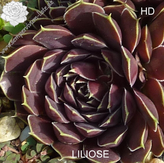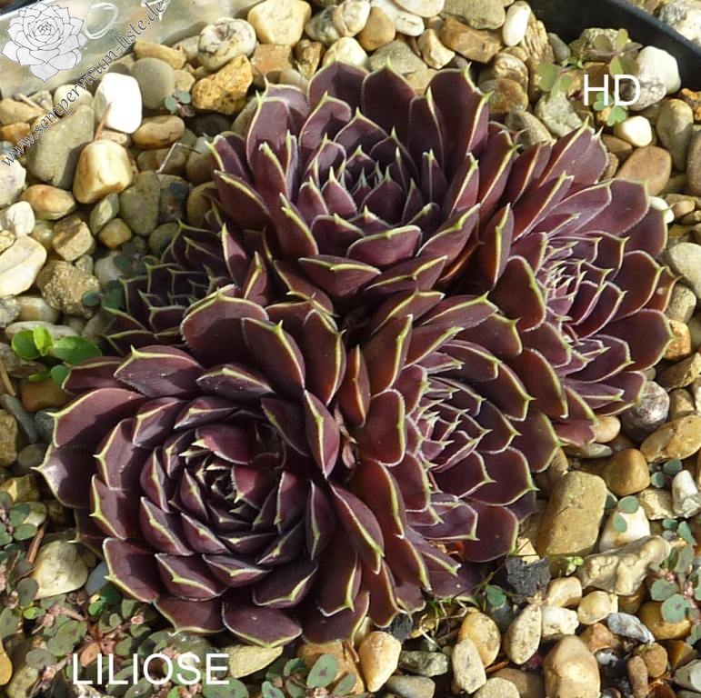 Rosetten bis 5 cm, Blätter oval, lang bespitzt, purpurrot - weinrot, Blattränder gelblich