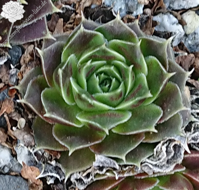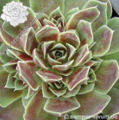 kompakte Rosetten, 5 -7 cm , blasses lila, Ränder helles grün-gelb, bewimpert