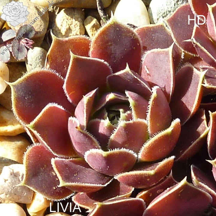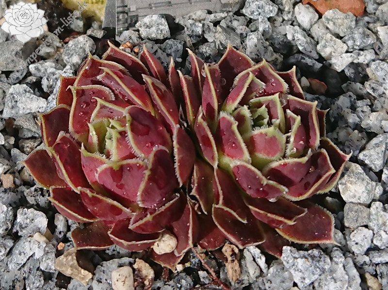 kleine Rosetten, Blätter oval, kurz bespitzt, hellrosa - beigerot, Blattränder hell, bewimpert