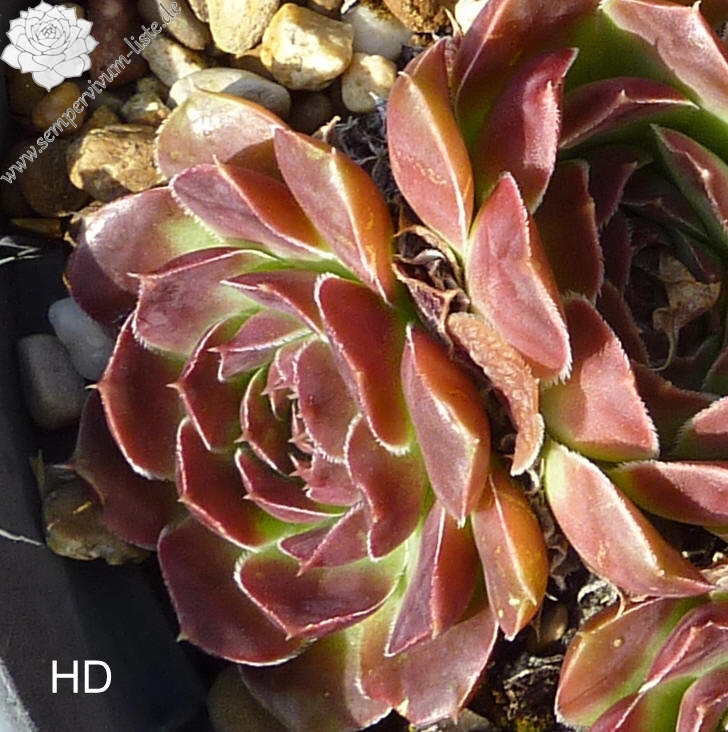 Rosetten bis 5 cm, keilförmige Blätter, kurz bespitzt, Mischtöne grün - gelb - orange, Blattränder leicht bewimpert