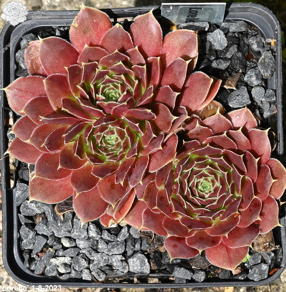 kleine Rosetten, Blätter oval, kurz bespitzt, rosabraun, Blattränder helles Grün, bewimpert