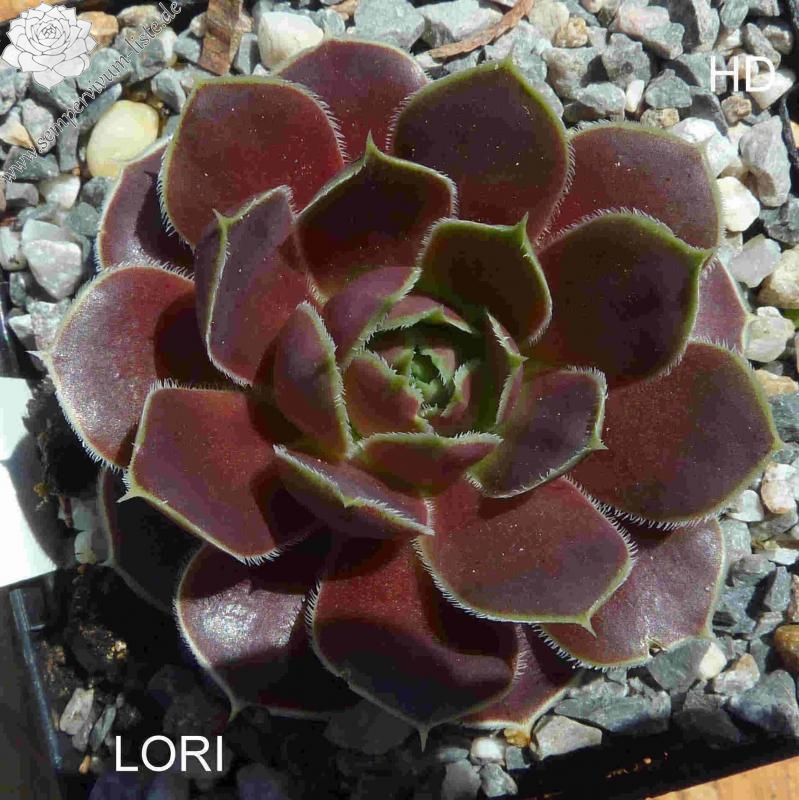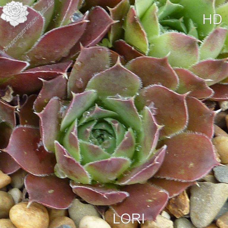 Rosetten bis 5 cm, Blätter breit spatelig, kurz bespitzt, Basis hellgrün, Rest beigerot - lachsrot, Blattränder bewimpert