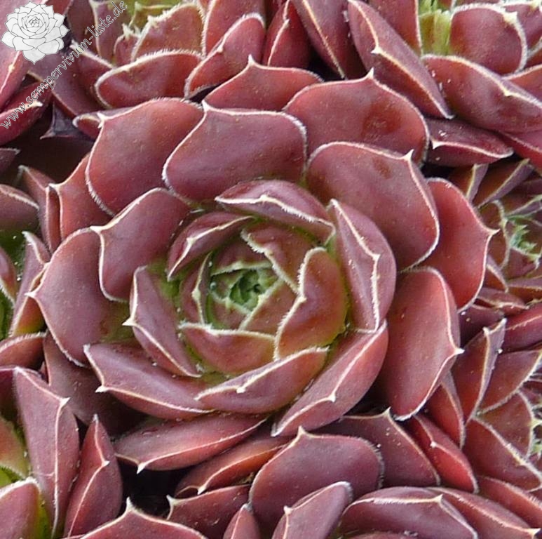 Rosetten 6 - 7 cm, leuchtendes bordeaurot, helle Blattränder