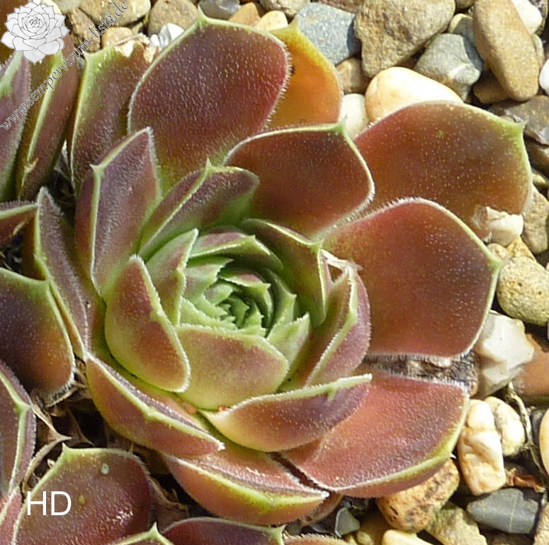 Rosetten bis 5 cm, Blätter eiförmig, kurz bespitzt, samtige Substanz, Basis lindgrün, Rest rosa - orange, Blattränder helles Grün, bewimpert