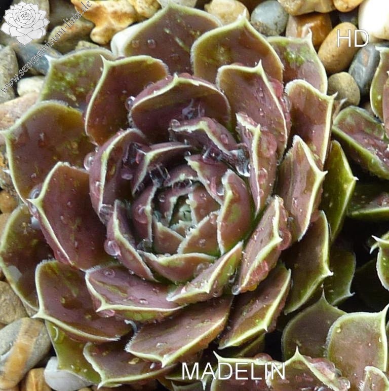 Andre hat in seiner Sammlung einen weiteren Klon cv. MADELIN, der völlig anders aussieht / Rosetten bis 6 cm, Blätter eiförmig, kurz bespitzt, resedagrün - olivgrau - beigerot überhaucht, Blattränder hell