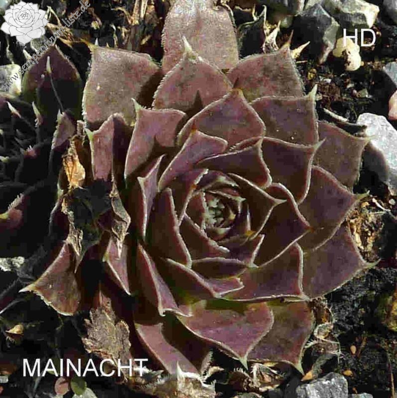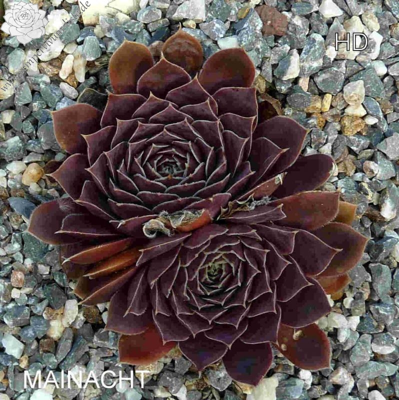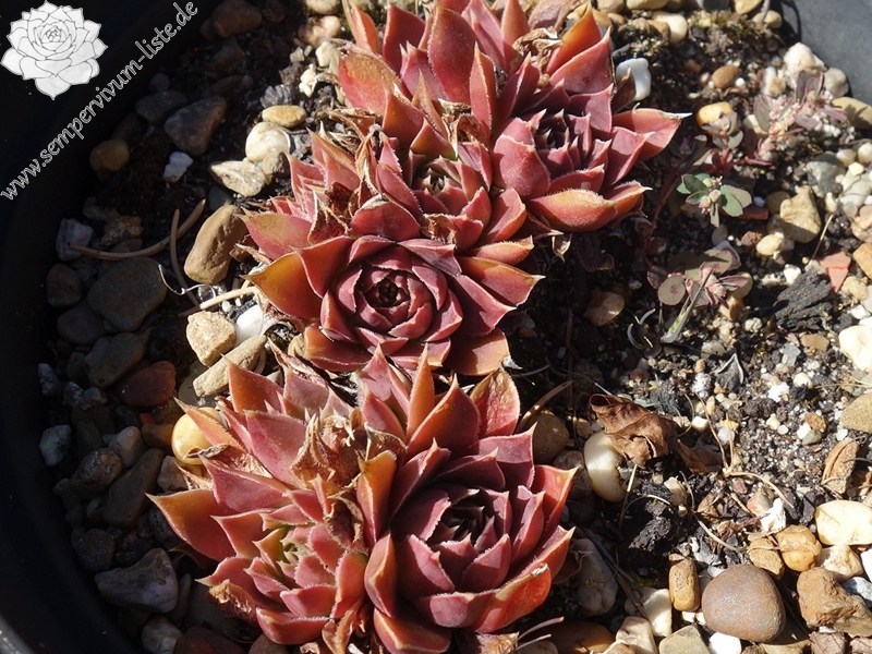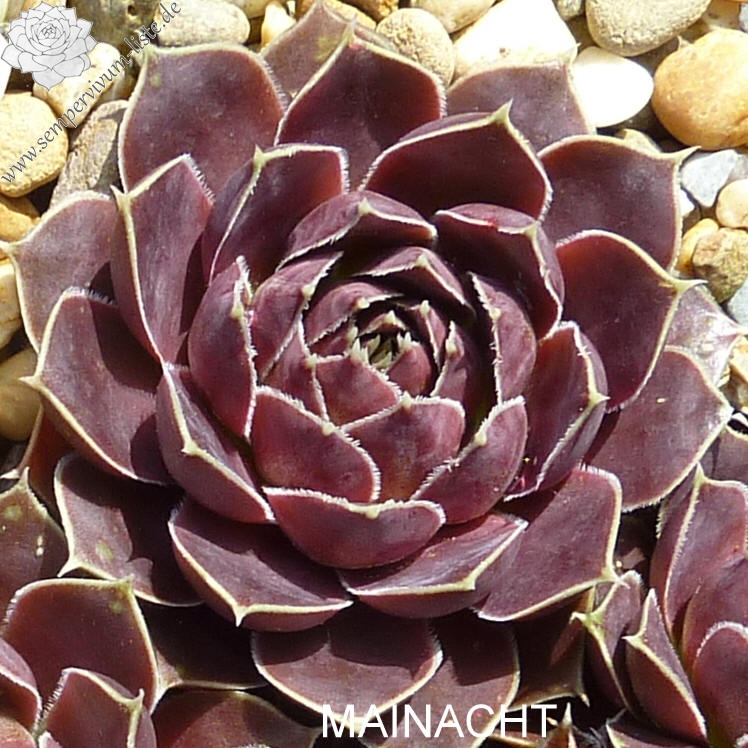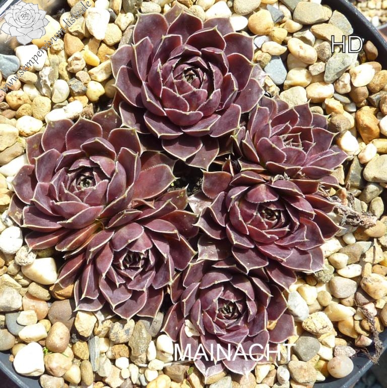 Rosetten bis 7 cm, Blätter rundlich, kurz bespitzt, rotlila, Blattränder hell