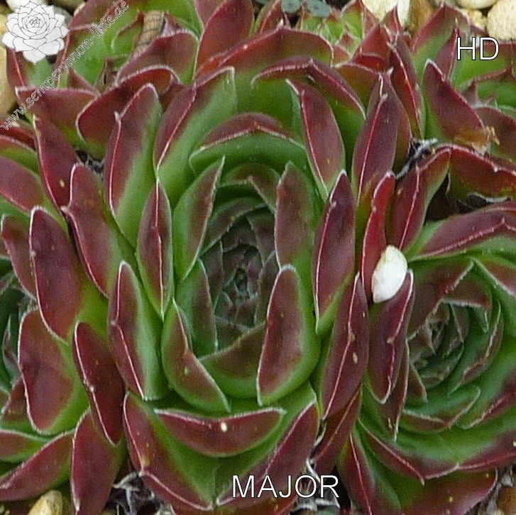 Rosetten bis 5 cm, Blätter rundlich, kurz bespitzt, Basis dunkles Grün, Rest kastanienbraun - braunrot