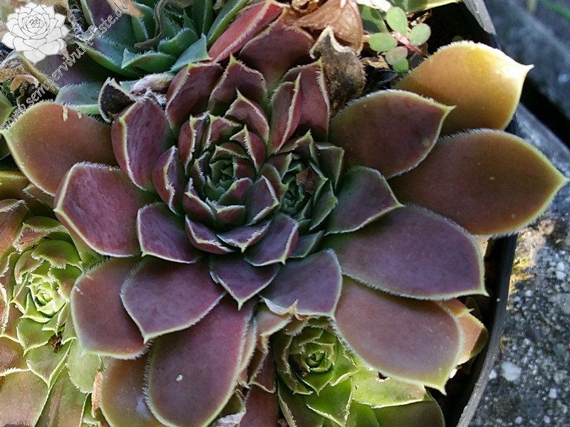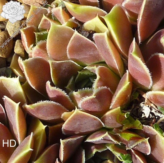 Rosetten bis 5 cm, Blätter oval, lang bespitzt, Mischfarben gelb - rosa, Blattränder hell, zart bewimpert