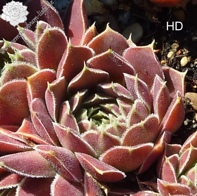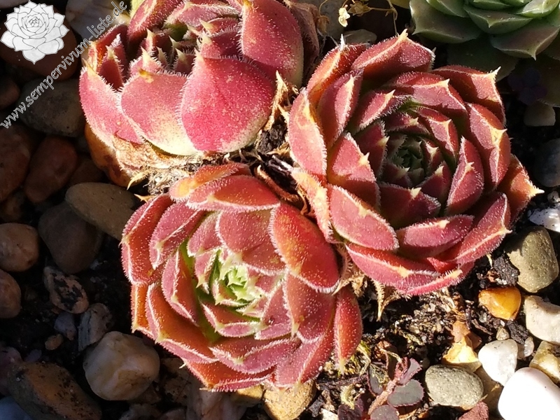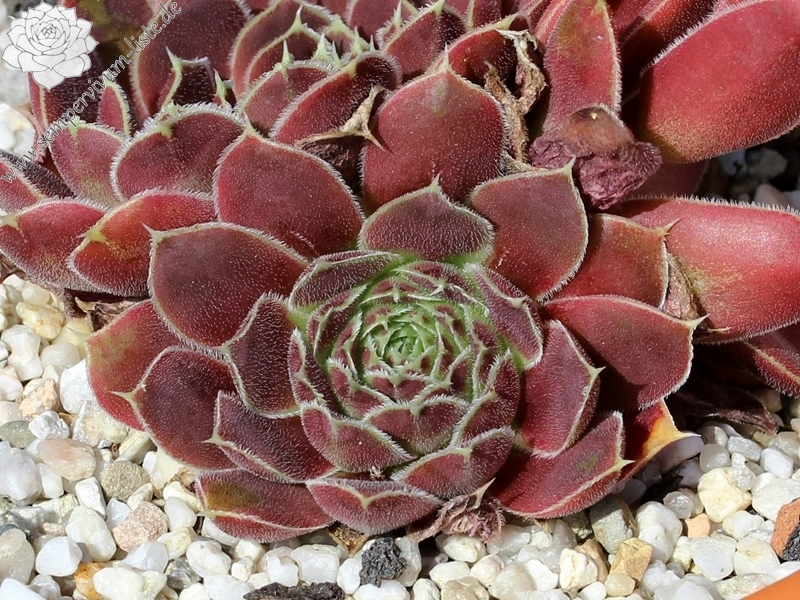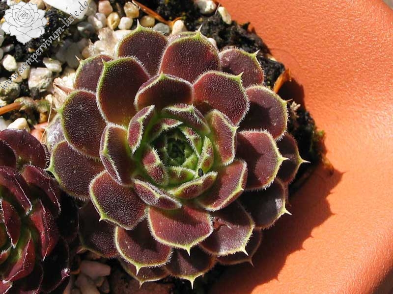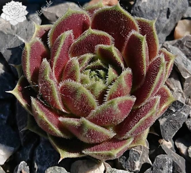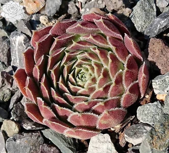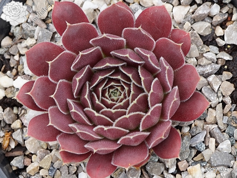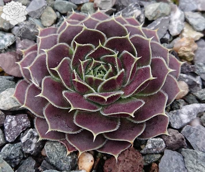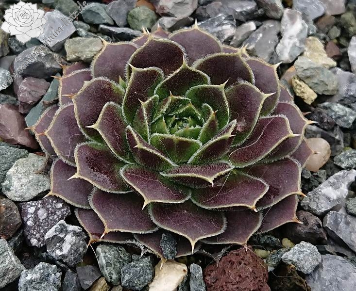Rosetten bis 4 cm, Blätter eiförmig, lang bespitzt, samtige Substanz, Blattränder hell, kurz bewimpert