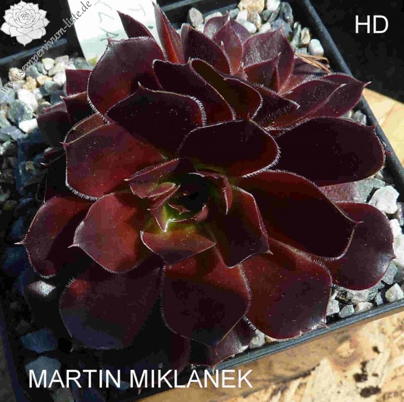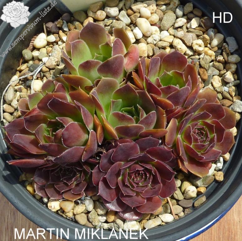 Rosetten bis 6 cm, keilförmige Blätter, kurz bespitzt, Herz grün, Rest dunkelbraun - rot, kleine helle Blattwimpern