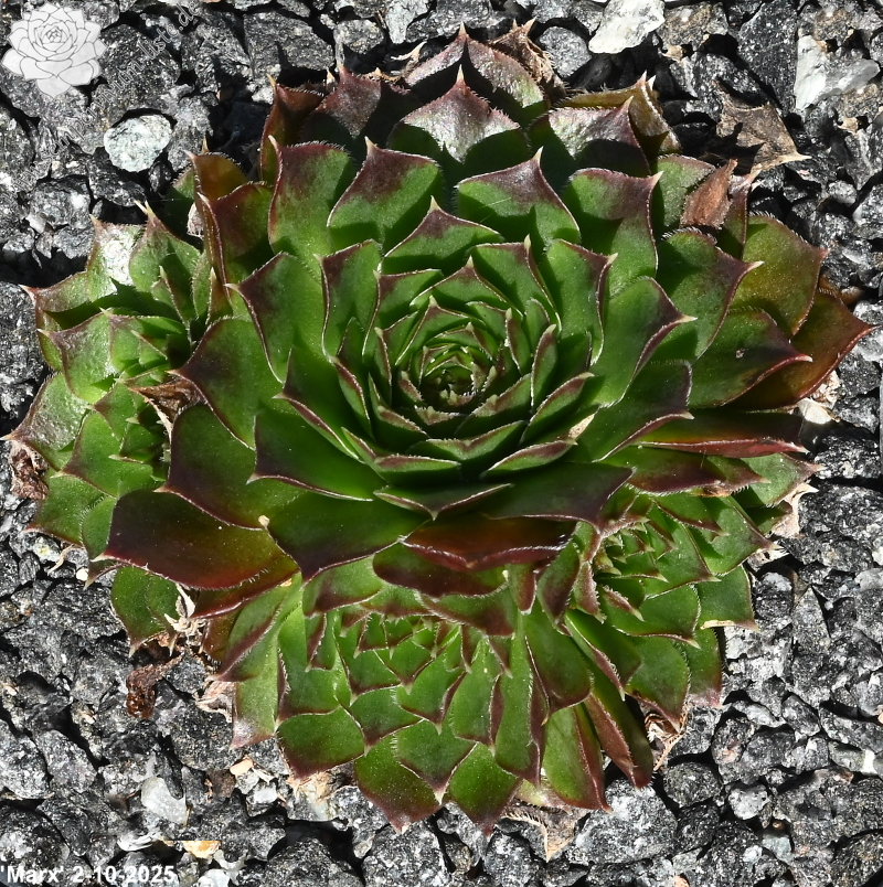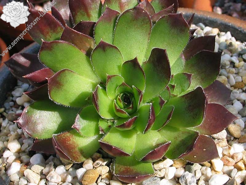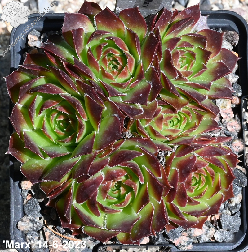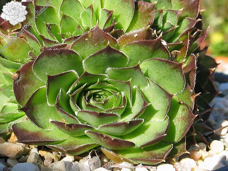 Der angebotene Donarsbart formt mittelgroße Rosetten in grüner Färbung. Die Blattspitzen heben sich, durch die dunkelbraune Tönung, deutlich ab. Hier kann man nicht mit Sicherheit sagen, ob es sich um eine offiziell benannte Auslese handelt. Sie stammt aus der gleichnamigen Gärtnerei und es könnte auch lediglich die Angabe der Herkunft aus einer Sammlerliste sein.