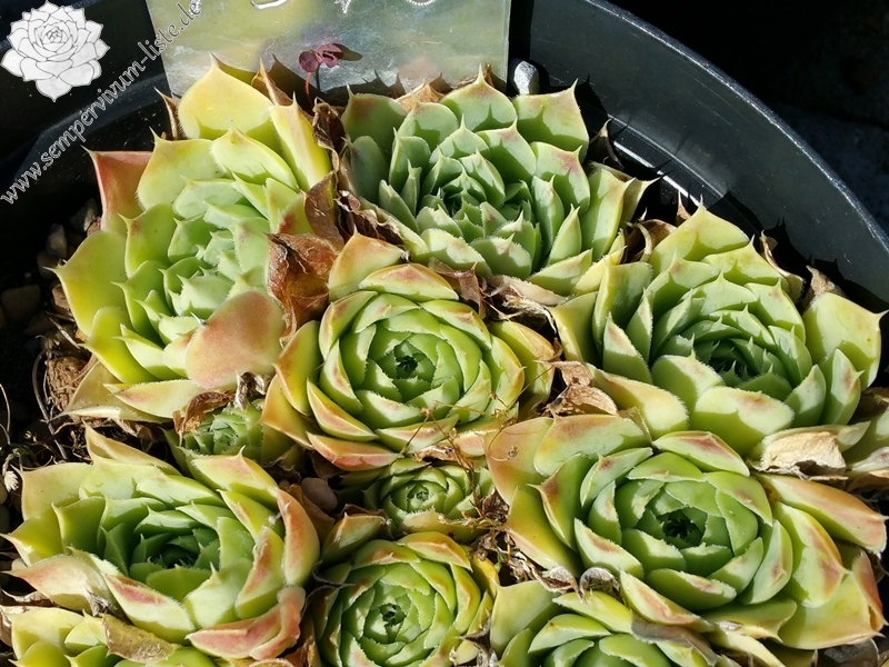 Rosetten bis 7 cm, lindgrün, Blattspitzen teilweise bräunlich panaschiert /