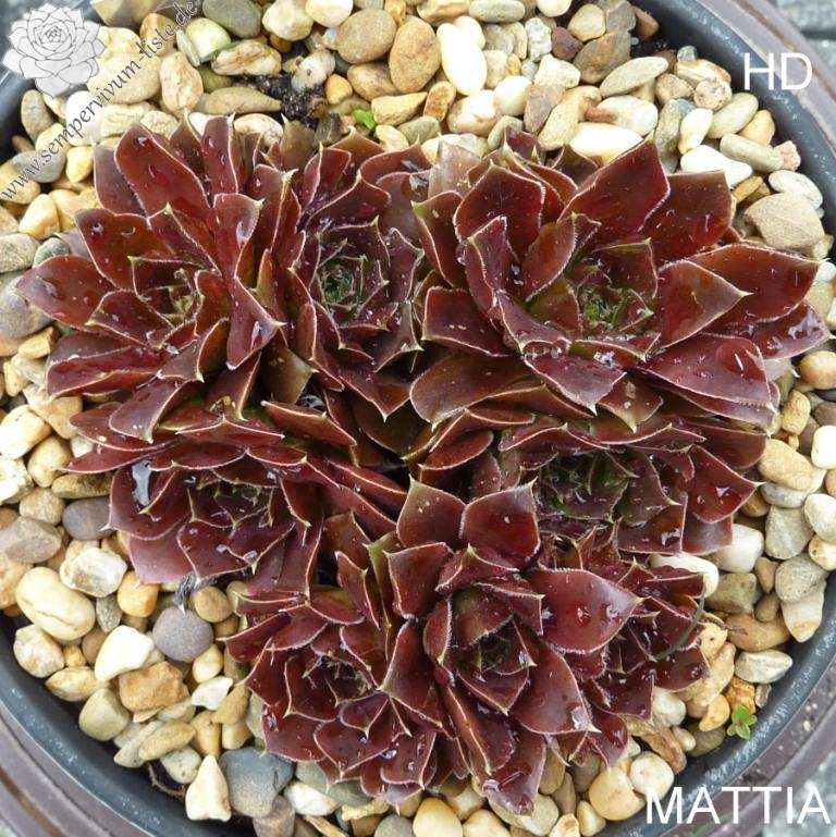Rosetten bis 6 cm, Blätter lanzettlich, lang bespitzt, weinrot - oxidrot
