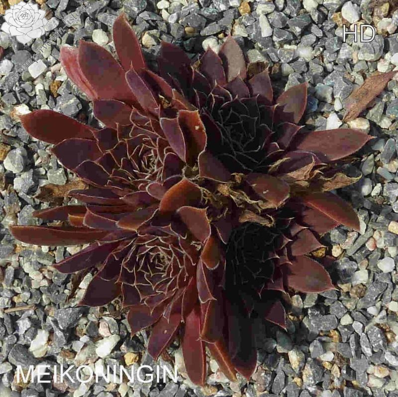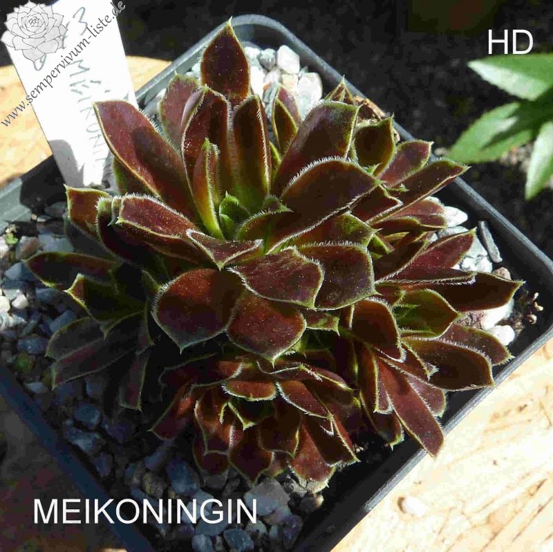 Rosetten bis 5 cm, Blätter spatelig, kurz bespitzt, dunkles Rot - Beige, Blattränder hell, leicht bewimpert