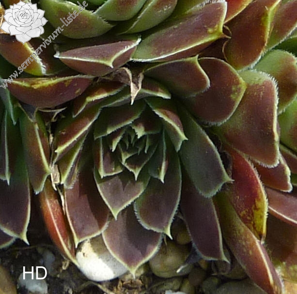 Rosetten 4 cm, Blätter lanzettlich, lang bespitzt, trübes Rot, Blattränder helles Grün, bewimpert